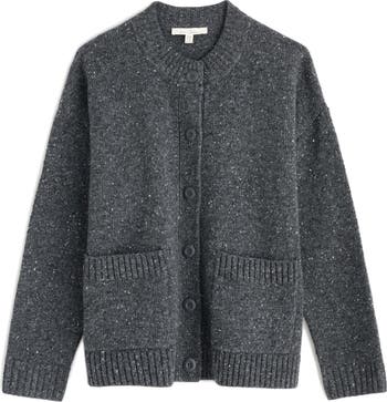 A cozy wool blend will keep you comfy in a classic button-front cardigan knit with a crewneck and warming ribbed trim.