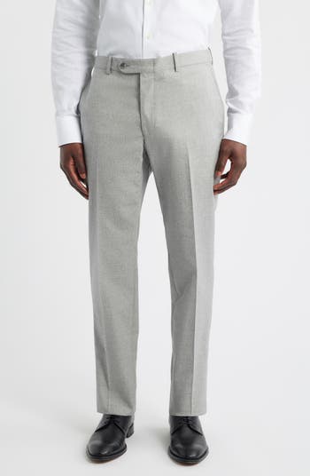 Smart and versatile, these dress pants tailored from a blend of wool, cotton and silk feature traditional flat-front construction that complements any semiformal look. Sitting just below the waist and cut with a bit of extra room in the seat and thighs, they keep you comfortable and looking sharp in warm-weather settings and between-season occasions.