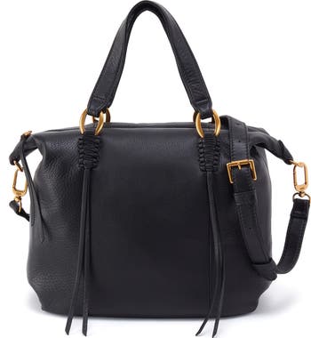 Brushed antique hardware and richly pebbled leather add signature elements to a spacious satchel designed with multiple straps and various compartments for optimal functionality.