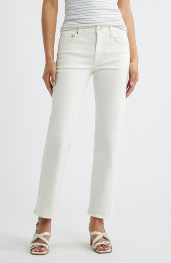 Cast in a crisp white wash and punctuated with frayed hems for a vintage-inspired look, these low-stretch jeans are superversatile with a high waist and relaxed, ankle-length straight legs.
