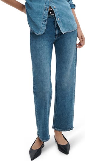 Faded for a vintage-inspired look, these low-stretch jeans are superversatile with a mid-rise waist and relaxed, ankle-length straight legs.