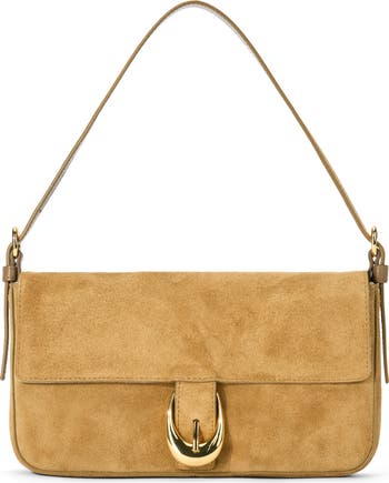 A logo-engraved buckle adds a hint of gleam to a texture-rich shoulder bag that's lightly structured and fitted with an adjustable strap for versatile styling.