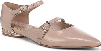 A pair of slim, adjustable straps offer a stylish and secure fit on a pointy-toe flat featuring a rich leather upper. Signature Contour+ Comfort technology provides pressure distribution, less fatigue and longer wear.