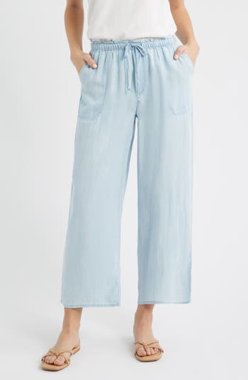 Seize a sunny day in these summery chambray pants made with flowy wide legs and easy ankle-grazing hems.