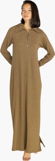 The Harper Dress is made from a lightweight stretch fabric with a front zipper that makes it nursing friendly. It has a loose, comfortable fit for easy wear.