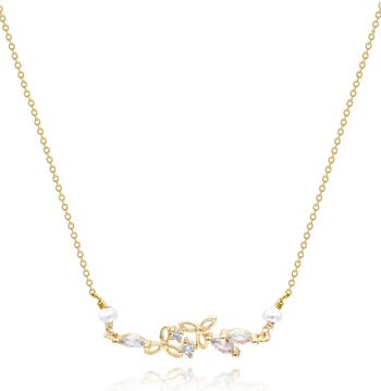 - Brass/14k-gold/freshwater pearl/cubic zirconia