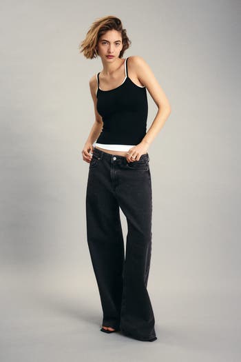 5-pocket jeans in cotton denim with gentle stretch for good comfort. Regular fit from waist to hip and wide cut from thigh to hem. High waist and zip fly with button. Wide, regular-length legs, designed to fall at top of foot with little or no stacking.