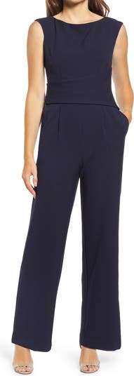 Rock a sleek day-to-night vibe in this cap-sleeve jumpsuit styled with tucked front pleats and a leg-elongating silhouette.