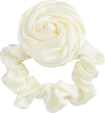 Lustrous satin and an oversized rosette bring an unexpectedly romantic aesthetic to this scrunchie that makes your ponytails even cuter.