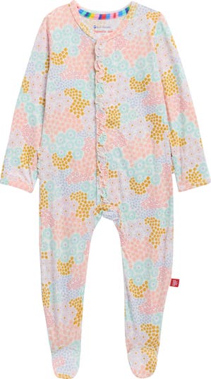 A floral patchwork print and frilly ruffles amplify the cute charm of this silky-soft footie featuring a SewSafe™ magnetic closure for easy on-and-off.