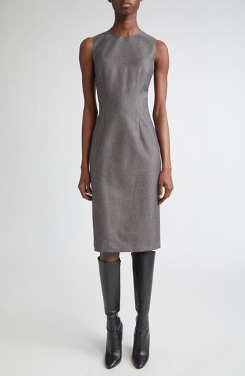 Perfect for 9-to-5 and beyond, this sleeveless sheath dress is tailored in a pixelated twill weave from fine combed wool-blend yarns with a subtle iridescent shimmer. Pickstitching and linear darting contours the fitted silhouette while highlighting the label's signature knack for sartorial elegance.