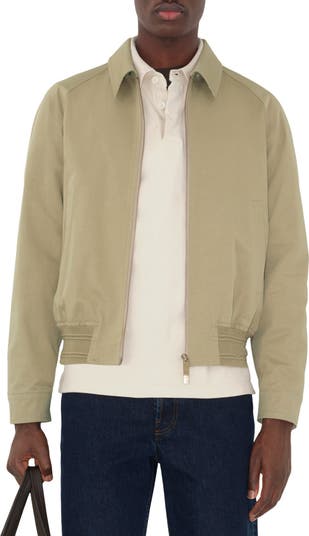 The label's instantly recognizable checks peek out from the lining of this bomber-inspired jacket shaped with a stretchy ribbed hemline textured with scrolling cursive script.