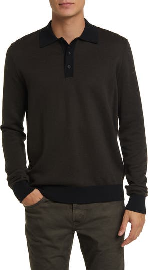 The ribbed collar, cuffs and placket offer subtle contrast to the fine pattern of this versatile polo made from a soft, warm wool blend.