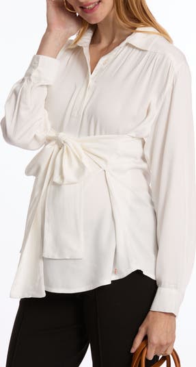 A timeless blouse with modern elegance, Harry combines flowing EcoVero fabric with gold zip nursing access and mother-of-pearl buttons. The belted waist ties it all together for a flattering look.