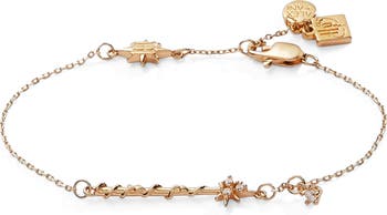 Made of vine wood and dragon heartstring, Hermione Granger's wand is always at the ready to protect her friends. This Harry Potter™ Hermione Wand Bracelet features an in-line charm of Hermione's wand with a burst of magic coming out, and a star-shaped crystal accent charm, on an adjustable-length chain. Wear it to celebrate the cleverest witch at Hogwarts.