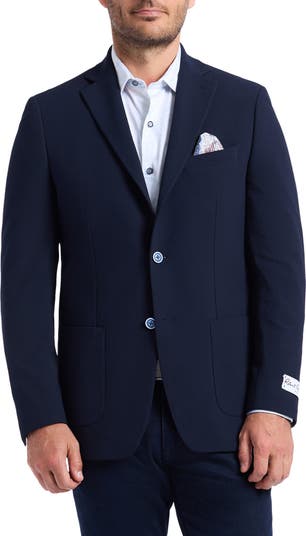 Perfectly puckered seersucker makes a relaxed, sunny-day favorite of a sport coat designed with rounded shoulders and a tapered waist to keep the profile both classic and casual. Pair it with lightweight fabrics and tailored pieces when you want to stay comfortable and look smart when the weather is warm.