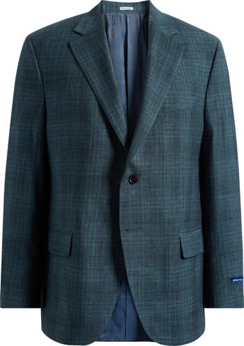 A crisp plaid of greens and blues smartly patterns a sport coat tailored from a lightly brushed wool blend with constructed shoulders emphasizing the softly tailored waist. Traditional detailing makes it a versatile complement to any semiformal or between-seasons look.