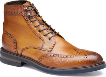 Crafted with Italian leather, a flexible Vibram® sole and memory foam cushioning, this wingtip boot offers timeless style and modern comfort.