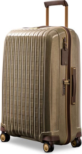 Pebbled leather accents and matte-brass finishings pair with a durable tweed-printed CURV Technology outer shell and steel cartridge bearing wheels in our refined and durable Extended Journey Spinner. Integrated TSA locks and an included luggage cover round out an impressive set of features to help create a seamless, luxurious travel experience.