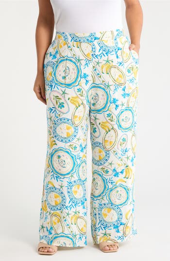 Fresh and floral, these wide-leg pants bring breezy movement to your lineup. A high, elasticized waistband hugs comfortably at the waist, while fluid wide legs open to a sweeping silhouette.
