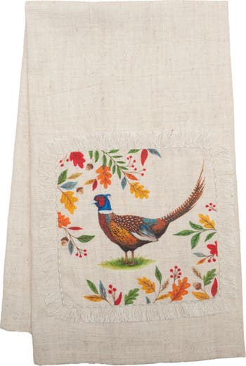 Embrace the beauty of autumn with the Harvest Pheasant Kitchen Towel. This elegant woven towel features a beautiful applique pheasant surrounded by colorful fall foliage, all set against a natural background. With rich hues and intricate detailing, it brings a touch of seasonal charm to any kitchen decor. Ideal for adding warmth and sophistication to any space, this towel is both functional and decorative, making it a perfect addition for autumn gatherings and celebrations.