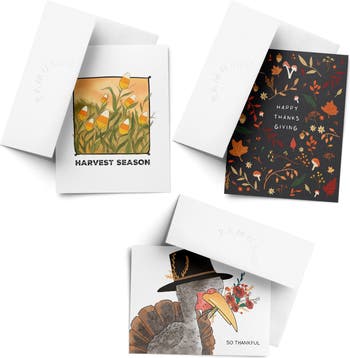 Harvest Season, So Thankful, Happy Thanksgiving Fall/Autumn Greeting Card Pack Sets