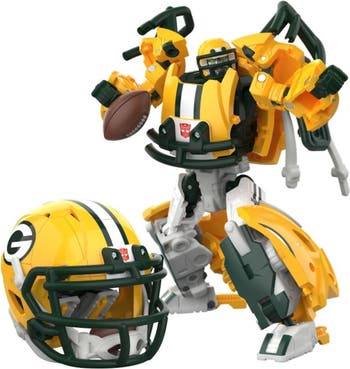 Tundra Prime (Green Bay Packers) Tranformers NFL Action Figure. Experience the epic combo of Transformers robots and the NFL with the Transformers Green Bay Packers Tundra Prime toy! The 5.5-inch (14 cm) figure converts from robot action figure to football helmet mode in 23 steps. With intricate poseability and accessories like a mini football the figure can hold and a mini helmet that the robot figure can wear, this unique collaborative action figure makes an awesome addition to any Transformers or NFL collection. Look for more Transformers collectible toys (sold separately, subject to availability) featuring favorite characters like Optimus Prime, Bumblebee, Megatron, and more to create a lineup that is More Than Meets the Eye. Ages 8 and up.