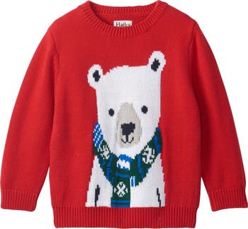 Keep your little one warm and cozy in this cotton-blend crewneck sweater featuring an adorable polar bear bundled up for blustery days.
