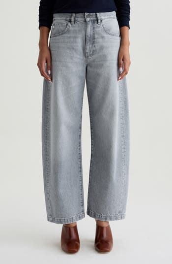 Subtle whiskering and a faded wash amp up the casual attitude of these barrel-leg jeans cut from nonstretch denim.