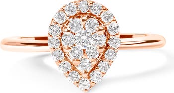 10K Rose Gold 3/8 Cttw Composite Diamond Pear Shaped Halo Promise Ring