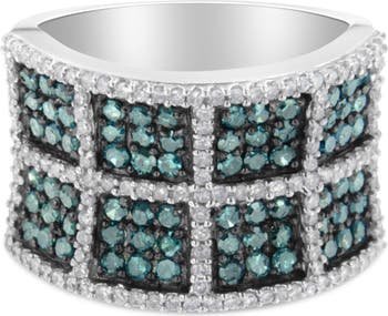 Stun everyone with your unique choice of rings by wearing this remarkable diamond ring. This fashion ring is buffed to the lustrous shine of treated blue diamonds that all are framed in the fine prong setting. The perfect arrangement of treated blue diamonds makes this ring an excellent illustration of creative art.