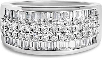 14K White Gold Round and Baguette 1 1/2 Cttw Diamond Ring