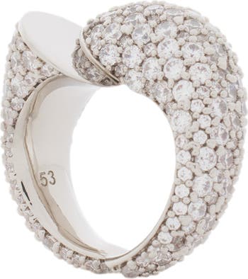 The Haute Séquence jewelry line is a tribute to Marie-Blanche de Polignac, Jeanne Lanvin's daughter, and also a musician. The sophisticated, minimalist shapes of these jewels are inspired by the geometric symbols used in musical scores. This ring is traditionally handcrafted. It is made up of two cylinders that perfectly fit the finger. The cylinders are paved with cubic zirconia, a synthetic stone that imitates the brilliance and appearance of diamonds.