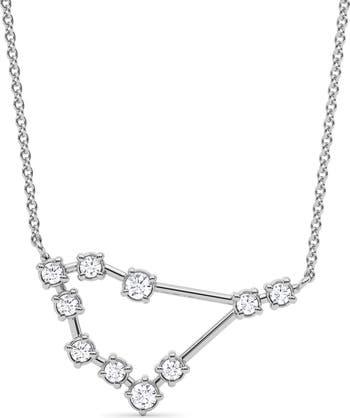 A delicate necklace anchored with a Capricorn constellation pendant is encrusted with sparkling lab-created diamonds representing twinkling stars.
