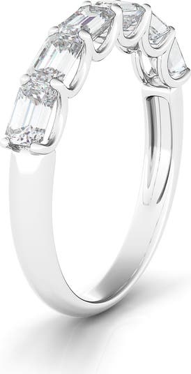 Seven prong-set lab-created diamonds brilliantly complement the gleaming 18-karat-gold band of this simple yet stunning eternity ring.