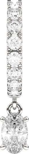 Lab-created diamonds in shapely oval cuts sway below these sleek huggie hoops crafted from recycled 18-karat gold and sparkling pavé.