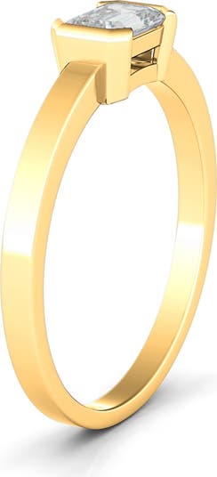 A half-bezel setting houses a twinkling lab-grown diamond in this 14-karat-gold band ring.