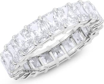 Shimmer and shine define an eternity ring crafted from recycled 18-karat gold and lined with lab-created diamonds.