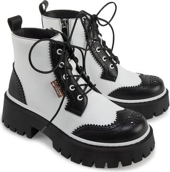 Step into timeless style with the Havana Boots, where classic tailoring meets modern attitude. Featuring a bold two toned upper with brogue-inspired detailing, this striking design delivers a refined yet fashion-forward look. Smooth faux-leather accents and a matching lace-up front add sharp contrast, creating a silhouette that feels both elegant and edgy.A practical side zipper ensures easy entry and removal, while the lace-up front is decorative and can be slightly adjusted for a more personalized fit. Inside, a soft lining provides lasting comfort, complemented by a cushioned insole with arch support for all-day wear. The removable insole allows for customizable support, while the thick, non-marking rubber sole delivers dependable traction and stability.Versatile and distinctive, the Havana Boots pair effortlessly with dresses, denim, and tailored looks for standout style in every season.For the best fit, please refer to the Hot Chocolate Design Size Chart before ordering.FeaturesBold two-toned-upper with brogue-inspired detailingSmooth faux-leather accents with lace-up frontSide zipper for easy on and offDecorative laces with light adjustabilitySoft inner lining for lasting comfortCushioned insole with arch supportRemovable insole for adjustable fitChunky, non-marking rubber sole with traction