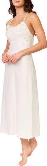 3D floral organza with gleaming crystals and a low-dipped back come together on this dreamy charmeuse chemise.