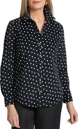 Breezy cotton ensures your everyday comfort when you slip into this easy-care button-up shirt with a pretty dot pattern and fine-wale corduroy texturing.