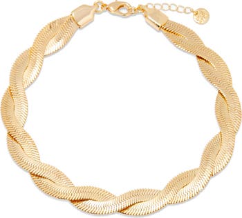 Complete your look with the modern allure of a snake-chain anklet featuring a twisted design and 14-karat-gold plating.