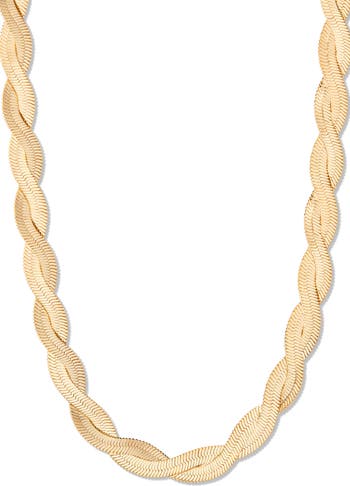 Complete your look with the modern allure of a snake-chain necklace featuring a twisted design and 14-karat-gold plating.
