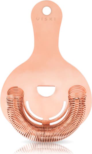 An unobtrusive flat handle, broad face, and tightly coiled spring define our professional-grade gold Hawthorne strainer, while two symmetrical sets of perforations make split pours second nature.