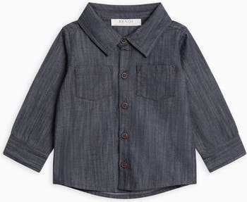 Dress your little one for the season's festivities with our Hayes Chambray Collared Shirt. Perfect for fall outings, this fitted long-sleeve shirt features a crisp collar and front patch pockets for a timeless look during autumn days.