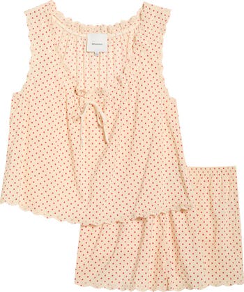 Slumber soundly or simply lounge in the fresh, breathable comfort of these cotton-blend eyelet pajamas featuring a boxy tank and matching shorts.