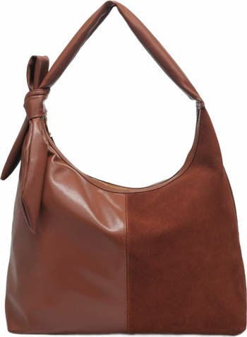 Our elegant Hobo bag, a sophisticated blend of genuine suede and vegan leather. The knotted strap detail and gold hardware add a touch of artistic flair to its timeless design. Inside, the fabric-lined interior features a zip pocket, making it as practical as it is stylish.
