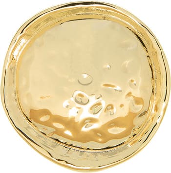 Light reflects off the facets of this hammered round pin that will add extra glint to your favorite piece.