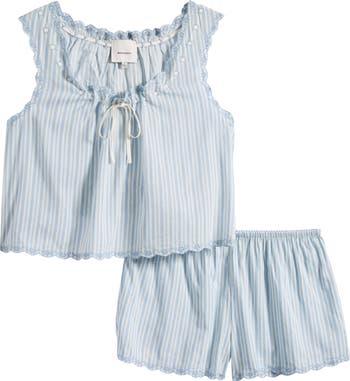 Slumber soundly or simply lounge in the fresh, breathable comfort of these eyelet-trimmed pajamas that pair a boxy tank with matching shorts.