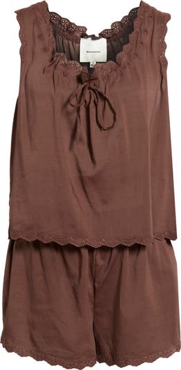 Slumber soundly or simply lounge in the fresh, breathable comfort of these eyelet-trimmed pajamas that pair a boxy tank with matching shorts.